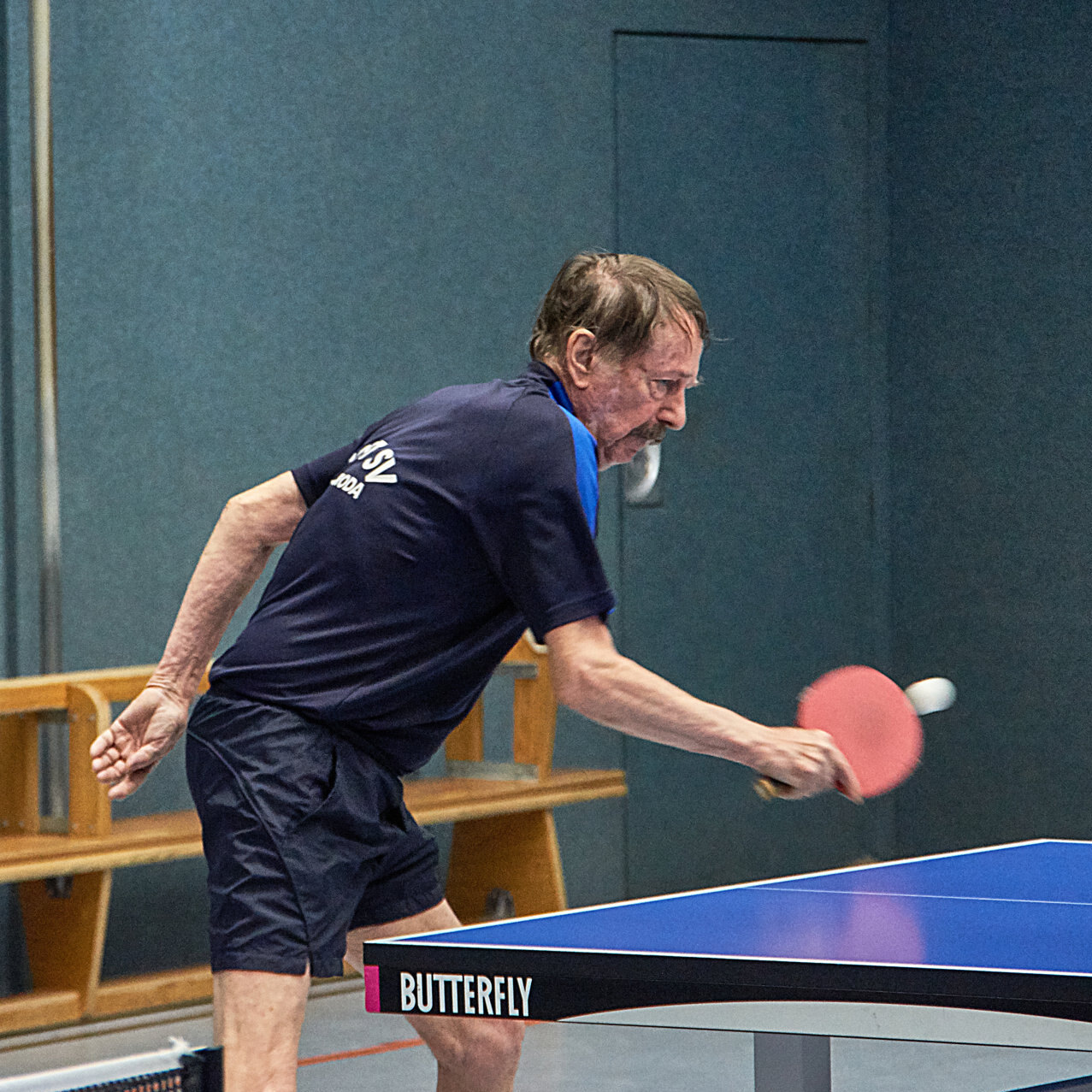 Wenn Reinhard Mehske so gelenkig bleibt, dann will er auch noch mit 90 Jahren Tischtennis spielen.
